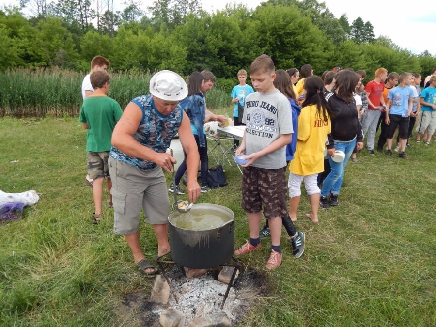 Після смачної юшки молодь грала у волейбол, плавала, спілкувалася та жартувала.