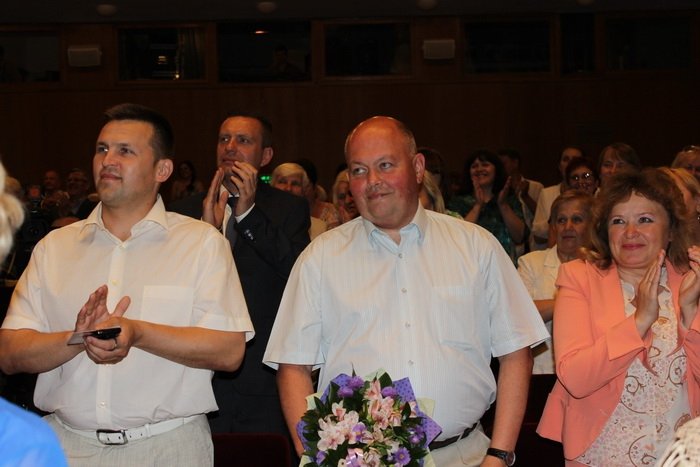 Зі сцени Волинського академічного обласного українського музично-драматичного театру імені Т.Г.Шевченка Луцький міський голова Микола Романюк привітав від себе особисто та депутатського корпусу Луцької міської ради Людмилу Приходько з ювілеєм та подякував за її талант і щоденну працю.