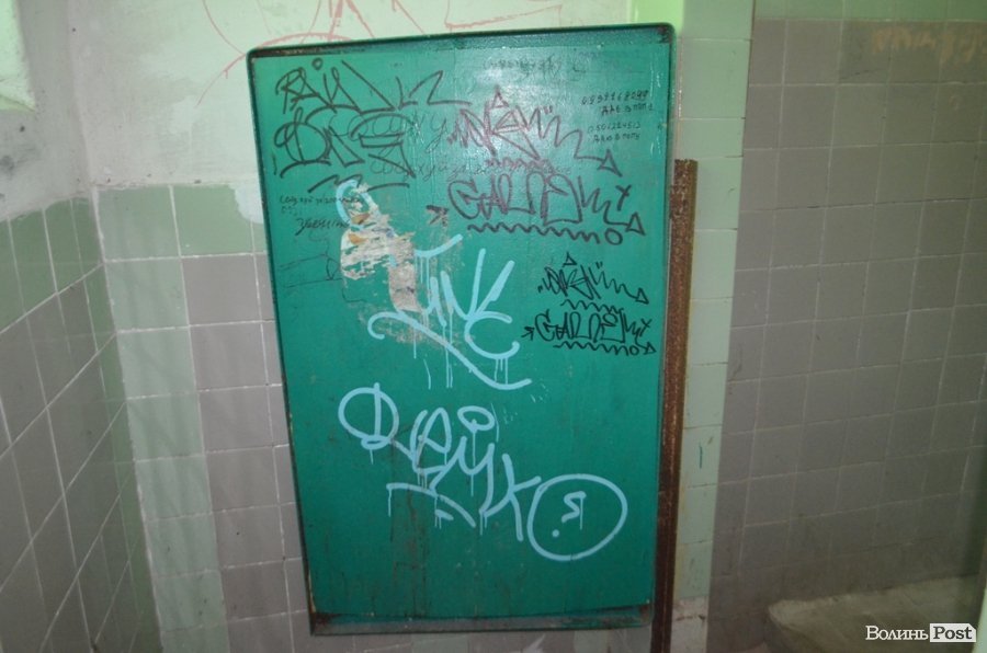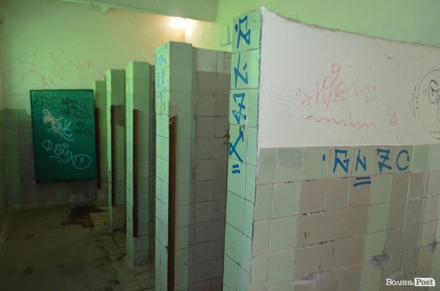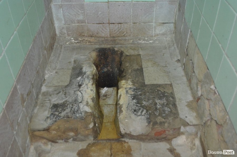 У середині туалету як в чоловічій, так і жіночій частині, ситуація ще гірша. Жахливий сморід у приміщенні, відсутні дверцята на кабінках, обірвані електричні проводи, виламані вимикачі, тому про освітлення у приміщенні навіть і не варто говорити. Нині ви там не знайдете жодного зливного бачка, а також раковини, у якій могли б помити руки. У пам'ять про них залишились іржаві водопровідні труби.