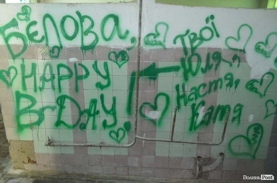 На стінах можна прочитати «інтелектуальні» написи місцевої молоді, у яких хтось зізнається в коханні, хтось шукає дівчину, а хтось шукає собі партнера для інтимних стосунків.