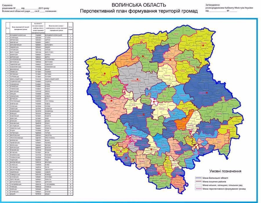 У Луцьку обговорили проект об’єднання громад, за яким на Волині замість 426 сільських та селищних рад планується створити 68 територіальних громад.