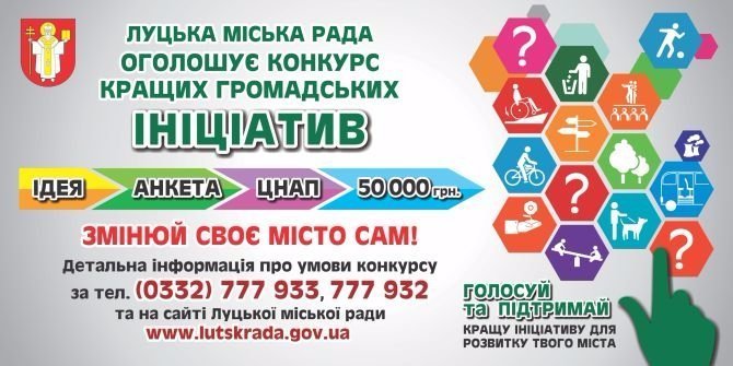 Луцька міська рада оголошує конкурс кращих громадських ініціатив