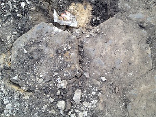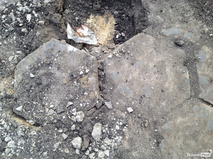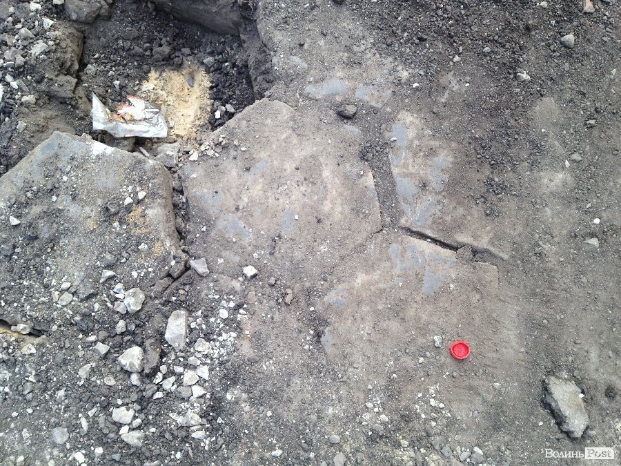 Старе польське мощення дороги відкопали працівники підприємства “БетонБрукСервіс” під час ремонту вулиці Крилова в Луцьку.
