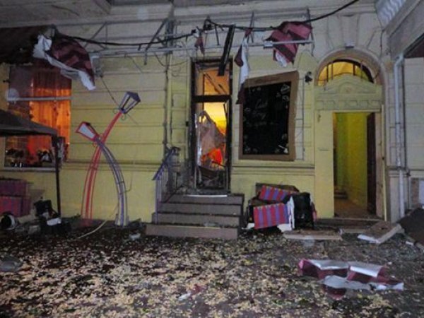 Крім того, вибито шибки на вікнах у квартирах над рестораном і у сусідньому кафе.