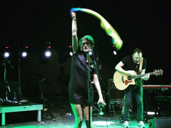 Рок-виконавиця підняла синьо-жовтий стяг під час виконання пісні "Интересно, как ты там". Після цього вона прив'язала прапор до стійки мікрофону.