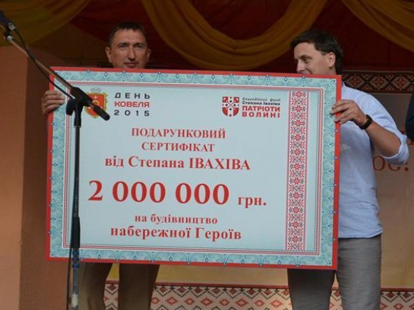"Саме ковельчани своїми зверненнями підказали Степанові Петровичу, що дуже хотіли б мати гарне місце для відпочинку. Тож спільно вирішили, що цього разу від імені Степана Івахіва та фонду «Патріоти Волині» ми даруємо сертифікат на два мільйони гривень для будівництва набережної Героїв у парку імені Шевченка", - йдеться у дописі.