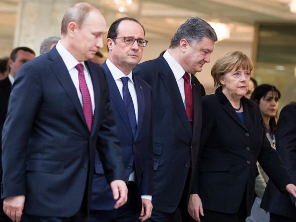 Лідери «нормандської чертвірки» Меркель, Олланд, та Путін погодились, що умови мінських домовленостей для вирішення конфлікту на Донбасі мають бути виконані до кінця 2015 року.