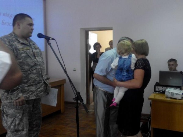 Мама загиблого Сергія Дармофала Софія Дармофал зачитала вірш, який розмістив на своїй сторінці у соцмережі її син після трагедії під Волновахою. Від імені демобілізованих військовослужбовців району виступив Сергій Фіть, котрий подякував батькам за гідне виховання синів України.