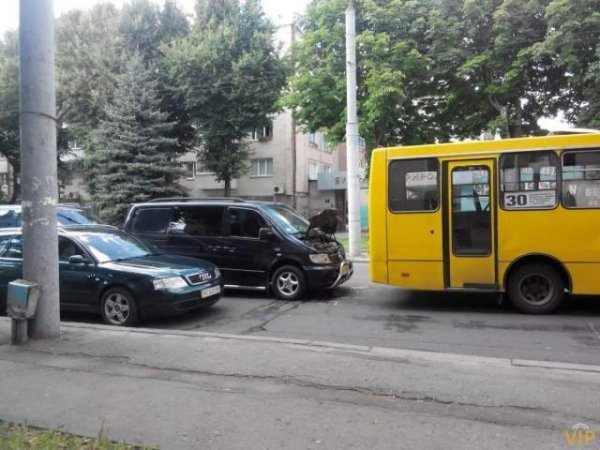 Аварія не завдала серйозних ушкоджень транспорту. В автомобіля Mercedes відлетів передній номерний знак. У авто Volkswagen Transporter – потрощений передній бампер і капот, а також вибите переднє скло. Окрім того, постраждав задній бампер маршрутки.