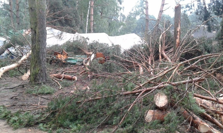 У селі Світязь біля турбази «Незабудка» від падіння дерев на наметове містечко (приблизно понад 50 штук дерев) семеро відпочивальників отримали травми різного ступеня важкості, одну людину з травмами середньої важкості госпіталізовано до лікарні.
