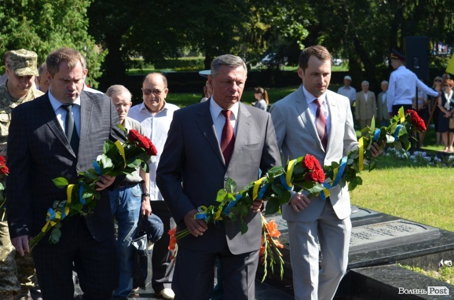 На захід також прибули Луцький міський голова Микола Романюк, секретар міськради Сергій Григоренко, голова Волинської облдержадміністрації Володимир Гунчик та голова облради Валентин Вітер. Окрім того, були присутні ветерани, військові та представники духовенства.