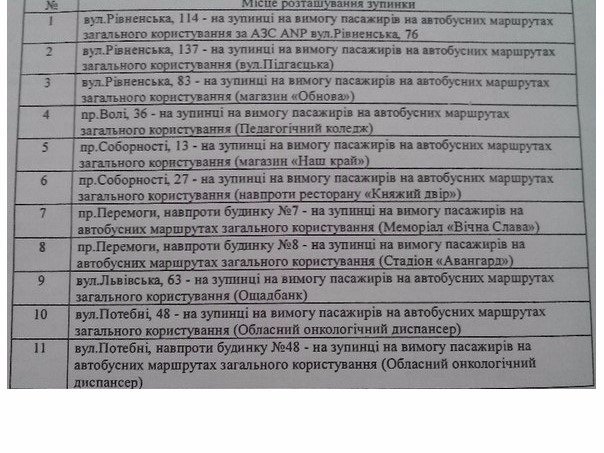 Окрім того, на основі звернень Луцького підприємства електротранспорту, з метою задоволення потреби в пасажирських перевезеннях пропонується доповнити перелік місць для облаштування зупинок громадського транспорту «на вимогу» для тролейбусів: