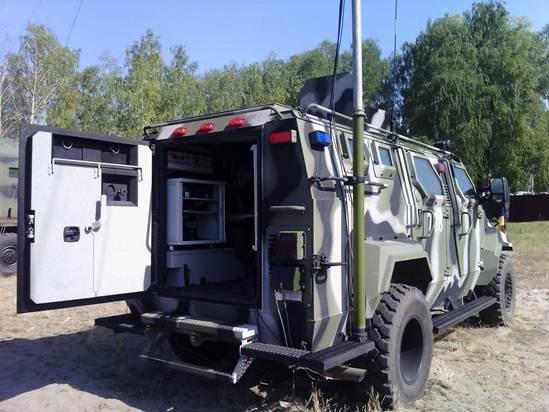 Зазначається, що новий бронеавтомобіль обладнаний системою радіозв'язку, яка працює через супутник. Це дає можливість організувати зв'язок незалежно від того, де дислокована та чи інша частина.