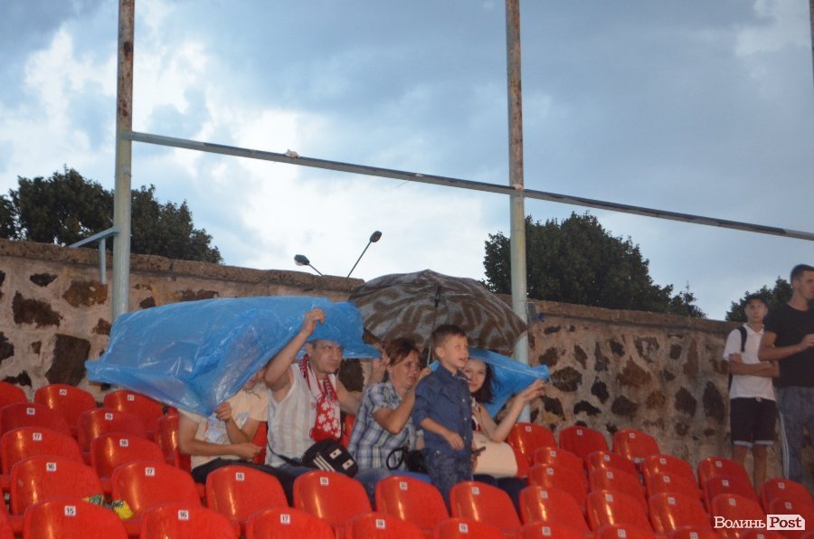 На початку другого тайму небо над Луцьком почало затягувати хмарами, і в кінці матчу поле накрила сильна злива. Проте багато уболівальників не поспішали покинути стадіон та залишалися на трибунах до останніх хвилин, щоб, незважаючи на поразку, підтримати свою команду.