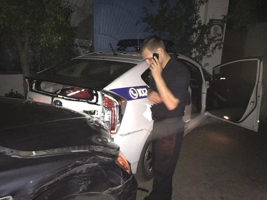 На переслідування порушника кинулися два екіпажі поліції — він заїхав у Новосілки за Хотянівкою у Вишгородському районі за дамбу ГЕС. Там винуватець ДТП умисно пошкодив два автомобіля поліції, впечатавши один із них у будівлю, та врешті був затриманий.