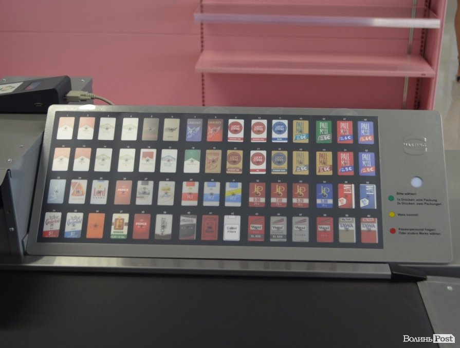 Покупець просто натискає на сенсорну кнопку, на якій є емблема марки сигарет, після чого у невеличкому віконечку забирає товар. Така технологія застовується лише у європейських мережах магазинів.