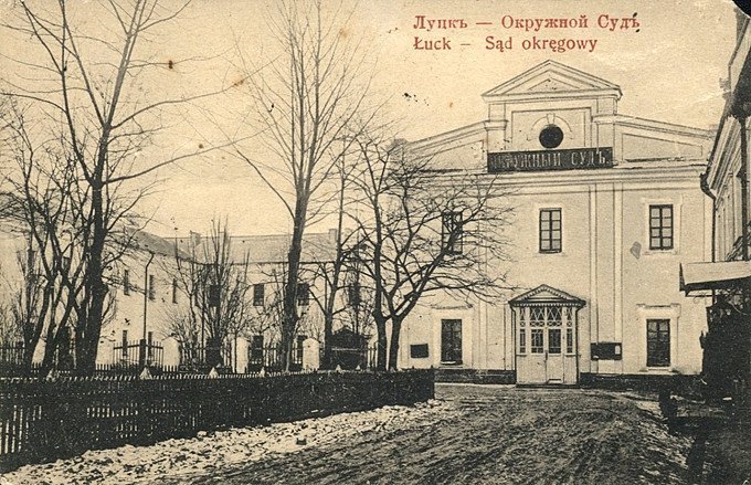 обор і гімназія на Парадному майдані. Поштова листівка Герша Лібермана 1903 року. Зображення з книги «Луцьк у старовинній листівці, гравюрі та фотографії» Віктора Літевчука