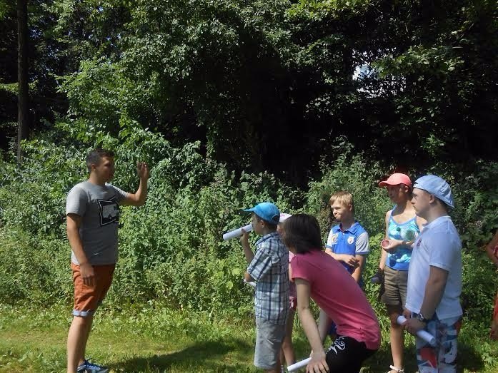 А далі діти помандрували, згідно малюнків на карті, парком біля Палацу учнівської молоді (саме там знаходиться їх обласна громадська організація) у пошуках маленького потяга на дитячій залізниці, кумедного слоника і « мистецької стоянки». На кожному знайденому обєкті діти грали у рухливі ігри, слухали цікаві історії про потяг та слонів.