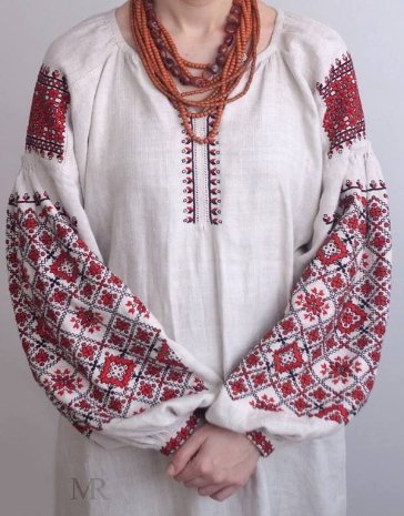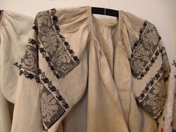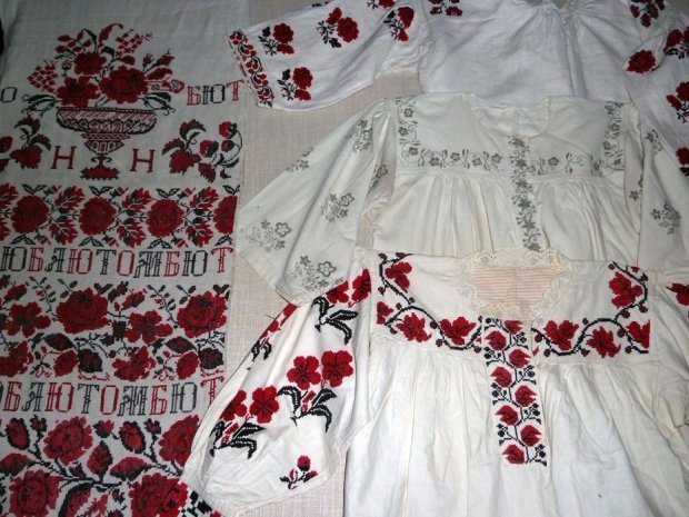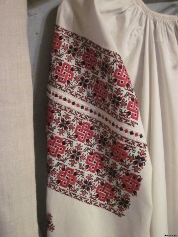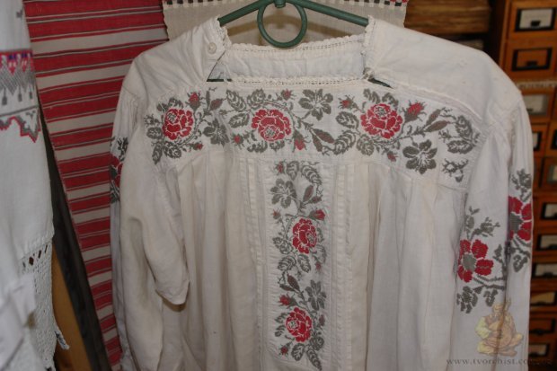 Сорочки пишно вишивали рослинним орнаментом у червно-чорних тонах.