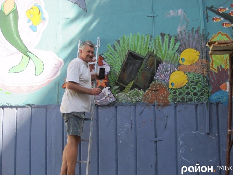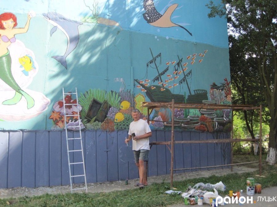 Художник Володимир Ісаков нещодавно почав роботу. Каже, що залишилося домалювати дрібні деталі, інформує Район. Луцьк.