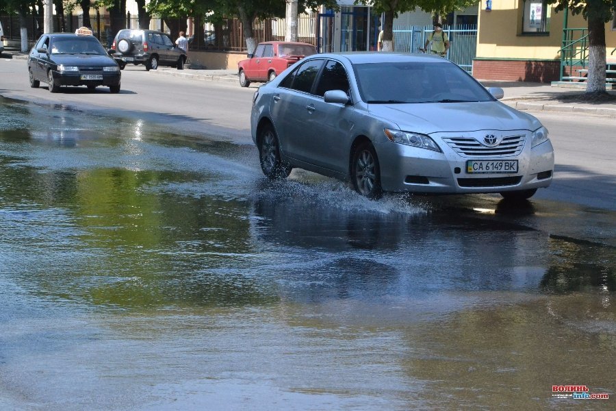 Брудна вода швидко витекла на проїжджу частину. Через це виникли труднощі у руху транспорту.