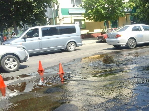 Посеред дороги на проспекті Грушевського навпроти обласної лікарні прорвало каналізацію.