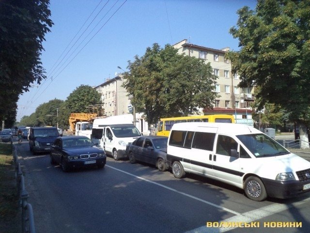 Так, зі слів очевидців, близько 10 години «етажерка» «Луцьксвітло» протаранила «стрілою» мікроавтобус Reno Trafic. Своєю чергою, бус «вписався» в OpelVectra, який, за принципом доміно, не оминув Fiat Scudo.