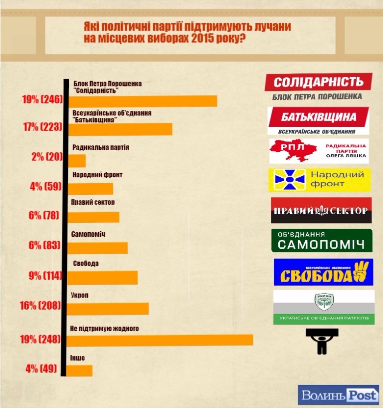 Кого підтримуватимуть лучани під час місцевих виборів? ІНФОГРАФІКА.