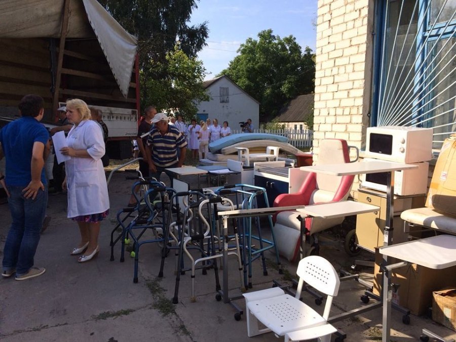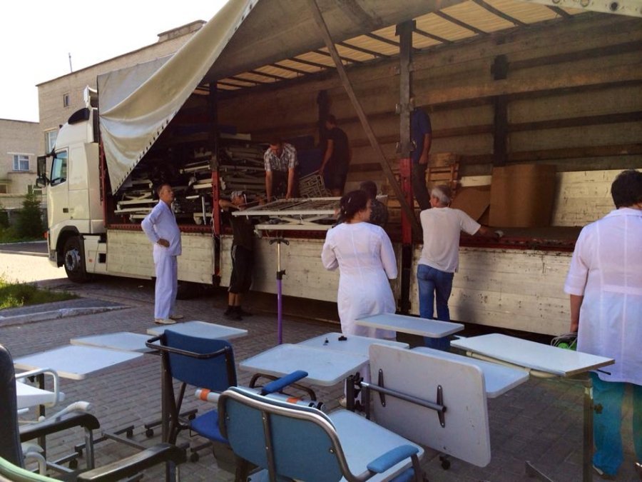 Це високоякісне французьке медичне обладнання (серед іншого: інкубатор для спасіння немовлят, дитячи ваги, дефібрилятор та перфузори для реанімації, інфузомати та електронні апарати для виміру тиску), гарні медичні меблі (як приклад 43 багатофукціональних електричних ліжка з матрасами та приліжковими столиками, ліжечка для немовлят, оглядові столи, крісла оглядово-транспортувальні, інвалідні візочки, крісла туалети для важкохворих, ролатори, обладнання для прийняття ванни важкохворими), дороговартісні ліки та розхідні медичні матеріали (10 коробок), ортези, побутову техніку (холодильники та мікрохвильові пічи). Наші медпрацівники дуже задоволені якістю та кількістю допомоги.