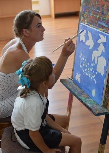 «Під покровом любові» - таку назву мала творча гутірка дружин учасників АТО та їхніх діток, що відбулась 8 серпня в цетральній бібліотеці для дітей. Шість матусь і семеро дітей віком до дев’яти років провели разом майже п’ять щасливих годин, відображаючи пензлем на справжніх полотнах свій настрій та емоції.