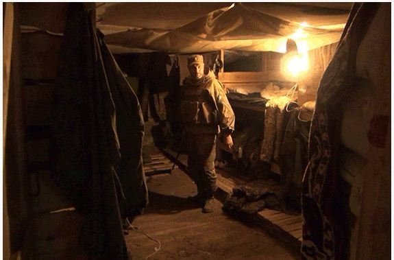 Їдемо на блокпост. Відстань близько кілометра відділяє нас від окупованої бойовиками території. Хлопці показують спорудження, де вони знаходяться під час обстрілів з боку бойовиків, та так званий «побут» на блокпосту.