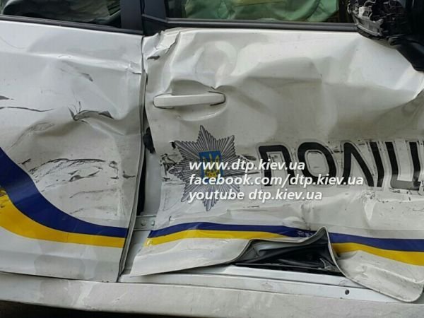 Як повідомляє dtp.kiev.ua, там в результаті сильного зіткнення позашляховика Chevrolet і поліцейського патрульного автомобіля Toyota Prius постраждали четверо поліцейських.