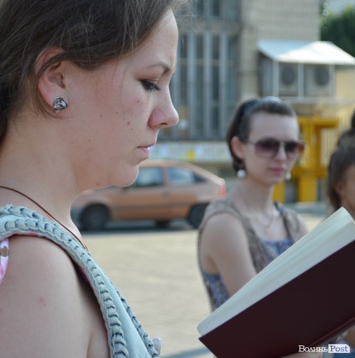 У центрі Луцька просто неба відбулася поетична акція: молодь захищала українську мову, читаючи поезію українських класиків і власні вірші.