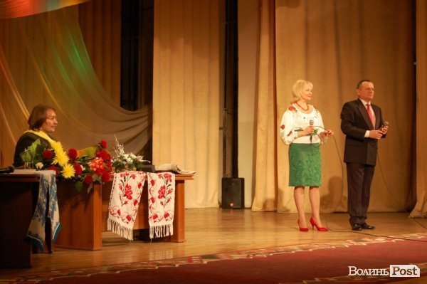 Потому ведучі свята - голова Волинської обласної організації Національної спілки письменників України Ніна Горик та журналіст і письменник Віктор Вербич - запрошували гостей вітати ювіляра.