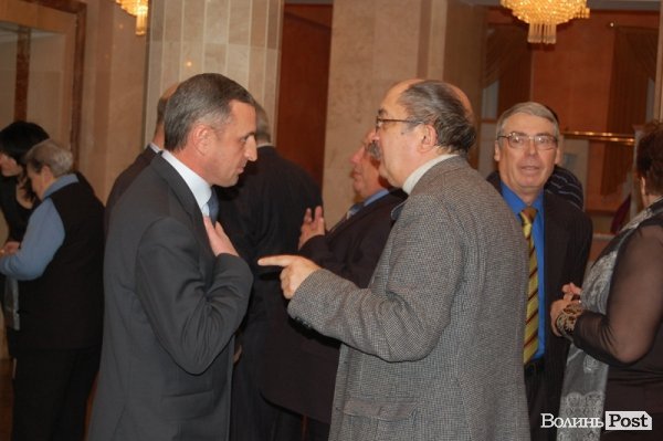 У холі перед концертною залою волинський письменник Володимир Лис жестикулював та гаряче дискутував про щось із заступником голови ОДА Олександром Курилюком.
