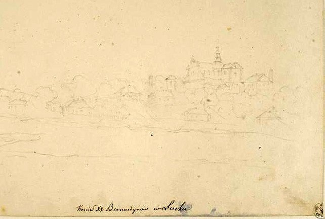 Приблизно в той час Луцьк відвідав Юзеф Крашевський. Він залишив контрастні спогади про місто. Дещо його приємно вразило і зворушило. Та, дивлячись на бернардинський, на нього находила меланхолія і він писав: «через передмістя Вульку ми в’їхали до міста коло кляштору отців бернардинів, в якому мешкає ясновельможний єпископ луцький. Старий історичний Луцьк був уже переді мною – але який убогий! …Сучасний Луцьк є заледве залишком і пам’яткою колишнього – життя його покинуло. Стільки воєн, облог, наїздів, стільки відомих людей пройшло сюдою, а крім замку про це вже ніщо не свідчить».