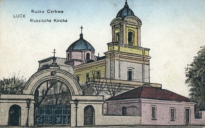 Собор над головною вулицею міста. Зображення з книги «Луцьк у старовинній листівці, гравюрі та фотографії» Віктора Літевчука