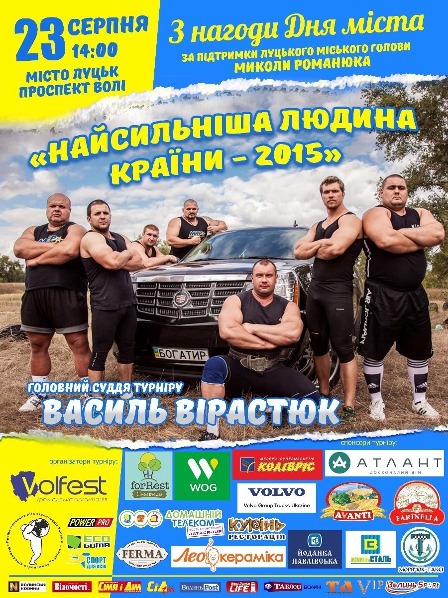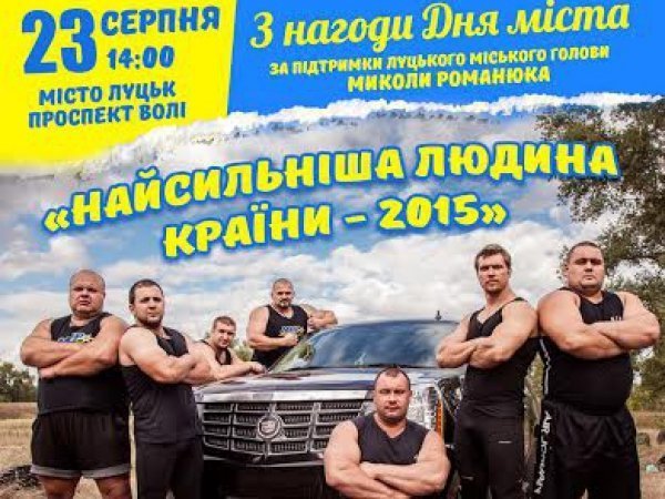 З нагоди Дня міста 23 серпня у Луцьку відбудеться Ukrainian open strongman cup на звання «Найсильніша людина України 2015». Змагання проведуть навпроти головного корпусу СНУ ім. Лесі Українки о 14:00.