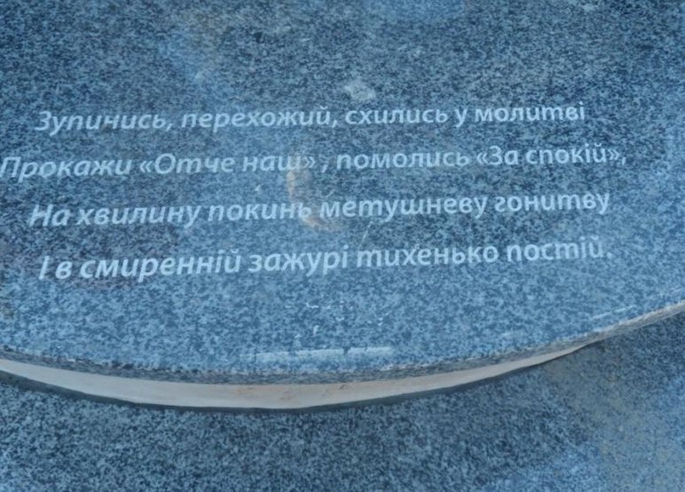 Віршовані рядки, викарбовані на постаменті, належать місцевому поету Олександру Гарбузі.