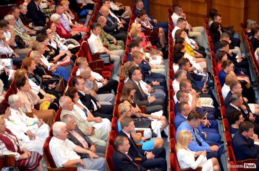 Посадовці та лучани прийшли до Волинського академічного музично-драматичного театру імені Тараса Шевченка аби взяти участь в урочистостях з нагоди 24-ї річниці Незалежності.
