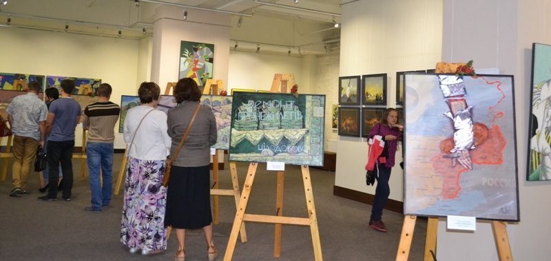 Картина «Російська тапорная работа» демонструє ситуацію подій на сході: відрубана рука у вишиванці та дві пташки - дві області, які зараз кормляться крихтами… «Ремонтна майстерня» - робота, яка волає до людей задуматись: а чи нормально ремонтувати бронежилети, кожного дня, наряду з побутовими приладами, іншими речами… Люди, задумайтеся! Невже ми звикаємо жити в війні?.. Так хоче сказати художник…