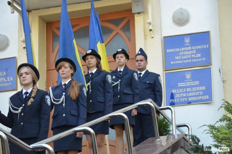 Біля стін Луцької міської ради відбулося урочисте підняття Державного прапора України.