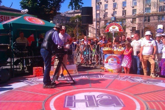 Михайло Кліш поділився світлинами, зробленими власноруч під час зйомок програми. На жаль, запису ефіру «Караоке на Майдані» від 23 серпня в інтернет досі не виклали.