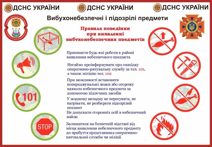Працівники ДСНС звертаються до громадян з проханням: у разі виявлення вибухонебезпечних предметів ні в якому разі не торкатися до них і одразу ж телефонувати за номером «101» або «102».