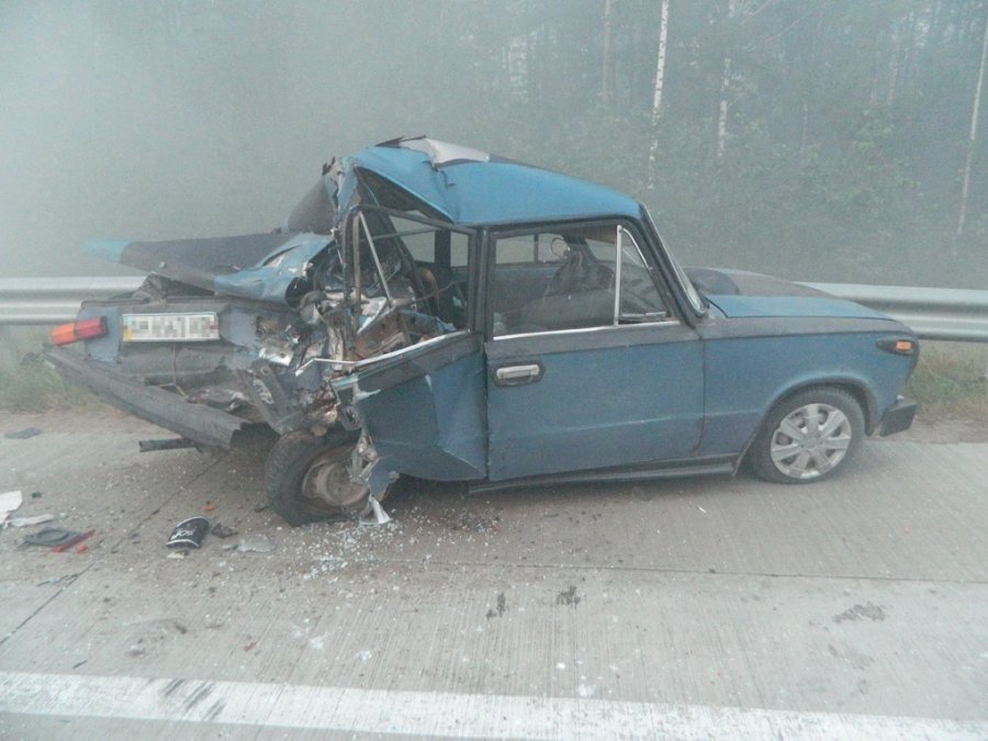 За попередніми даними, водії транспортних засобів рухалися у попутному напрямку. Через значне задимлення повітря і обмежену видимість на дорозі водії легкових та двох вантажних автівок зменшили швидкість, натомість водій «SCANIA», 43-річний житель Волинської області, не зорієнтувався у дорожній ситуації та «наздогнав» 5 машин, що рухалися попереду нього. Внаслідок зіткнення 6-х автомобілів постраждали шестеро людей: 46-річні водій та пасажирка ВАЗівки, 26-річний водій та троє пасажирів «Peugeot Partner» віком 20-ти, 25-ти та 27-ми років.