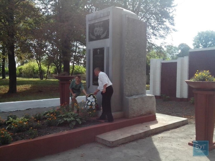 Начальник другої дільниці Олександр Божко та провідний інженер планового відділу Тетяна Касіянка поклали вінок до пам’ятника загиблим шахтарям. Присутні вшанували загиблих хвилиною мовчання.