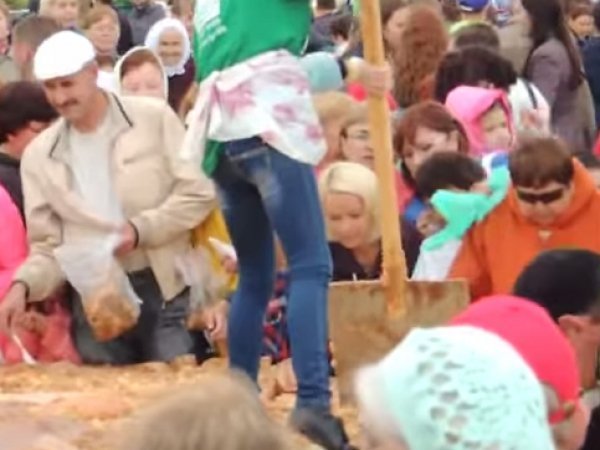 Росіян нагодували яблучним пирогом з лопати. ВІДЕО