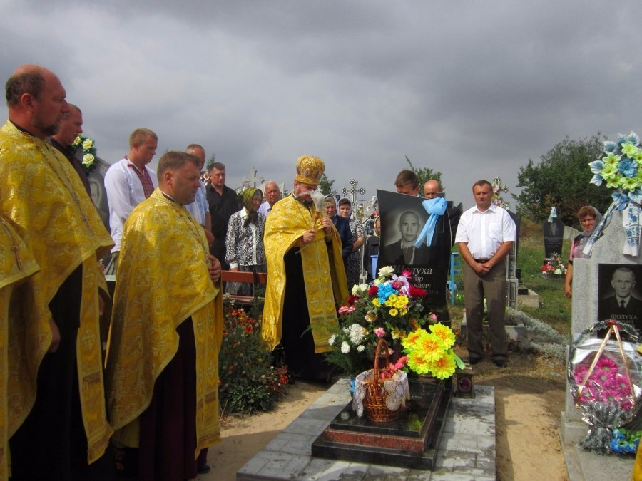 Священики прочитали заупокійну молитву та освятили надгробний пам’ятник, а також меморіальну дошку, яку встановили на честь бійця на фасаді місцевої школи.