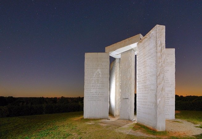 У 1979 році хтось під псевдонімом RC Christian замовив будівельній фірмі виготовлення та встановлення монумента – конструкції з шести гранітних монолітів загальною вагою понад 100 тонн. На чотирьох бічних плитах викарбувані десять заповідей нащадкам на восьми мовах. Останній пункт говорить: «Не будьте раком для Землі, природі теж залиште місце!»