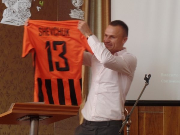 Перебуваючи на малій батьківщині, відомий футболіст, гравець «Шахтаря» та української збірної В’ячеслав Шевчук зустрівся з педколективом своєї альма матер - ЛНВК ЗОШ І-ІІІ ступенів №22 – ліцей.